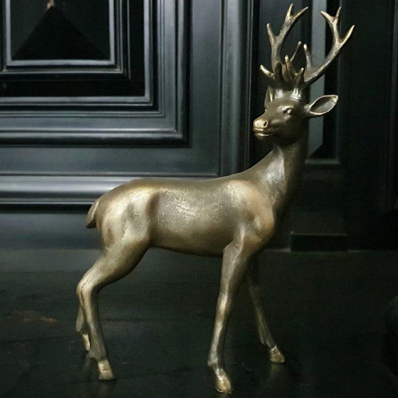 This beautiful, antique stag will bring elegance and beauty to your home. Whether it be displayed as a Christmas decoration or all year round, this gold stag is complete with subtle textured detailing, giving the ornament character and charm. This lifelike statue of this gracious creature will be a striking addition to any outdoor or indoor space. Made from durable polyresin, it offers the appearance of aged metal while remaining lightweight and weather-resistant, this ornament is perfect for indoor displays, mantelpieces, shelves or outdoor settings.