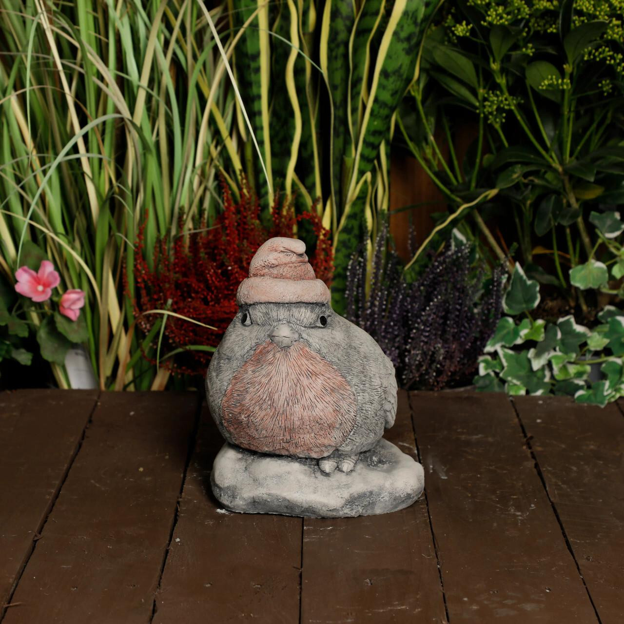A beautiful garden ornament of a Christmas Robin wearing a little Santa hat, this is a lovely addition to holiday displays or as a thoughtful seasonal gift. This beautifully crafted stone cast robin, offers a subtle yet festive touch to your décor. Its detailed design and durable construction make it suitable for both indoor and outdoor use. Perfect to adorn your lawn, porch or mantlepiece year after year.